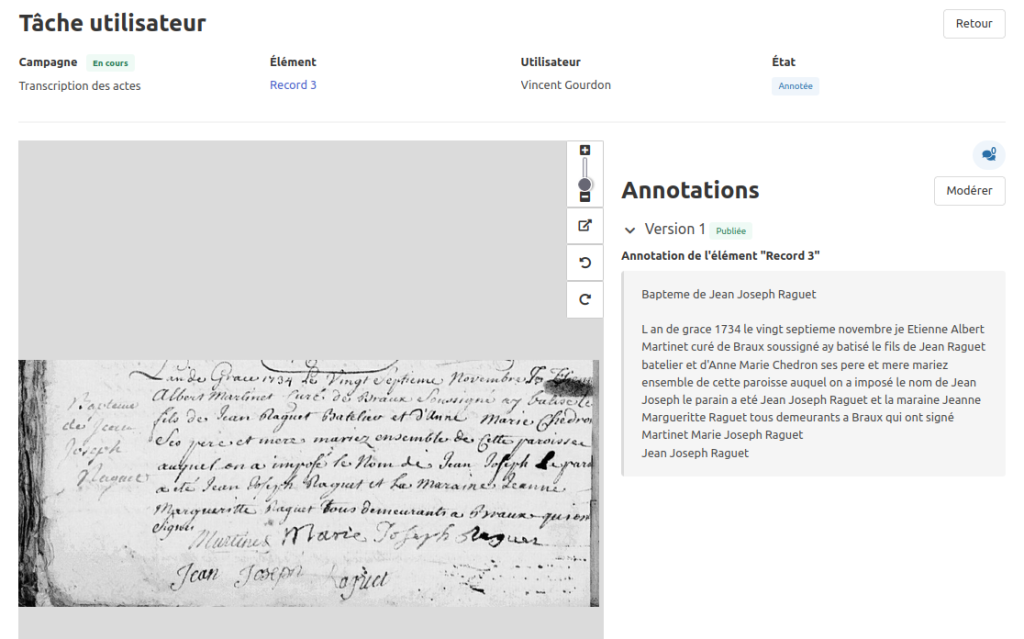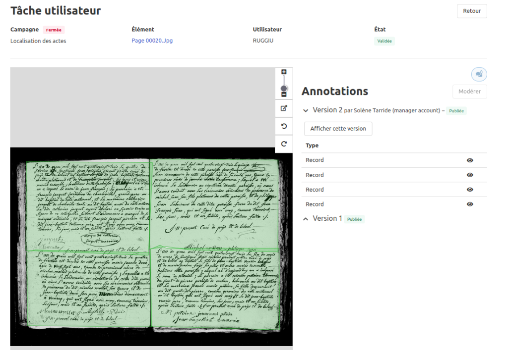 La constitution de ce jeu de données a reposé sur deux phases d’annotations expertes réalisées par des historiens sur l’outil d’annotation Callico :